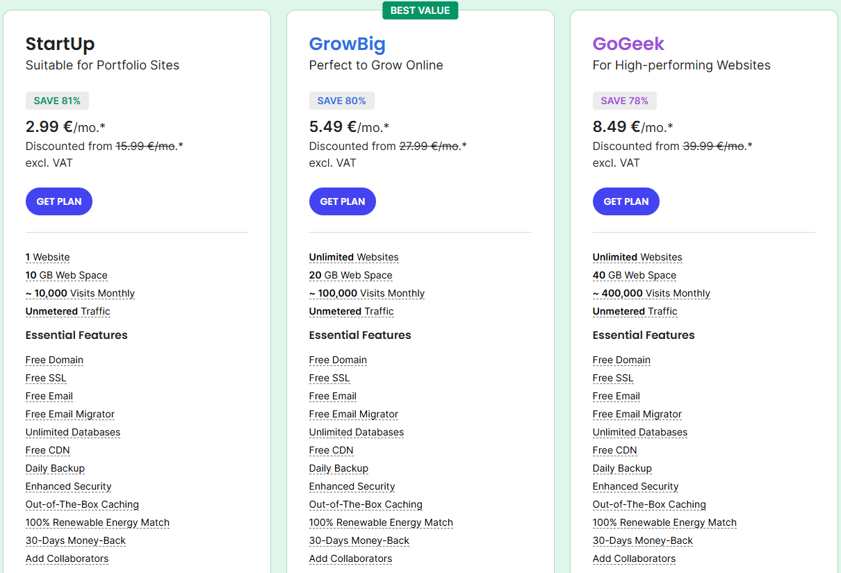 Siteground Prices, Hosting Plans: