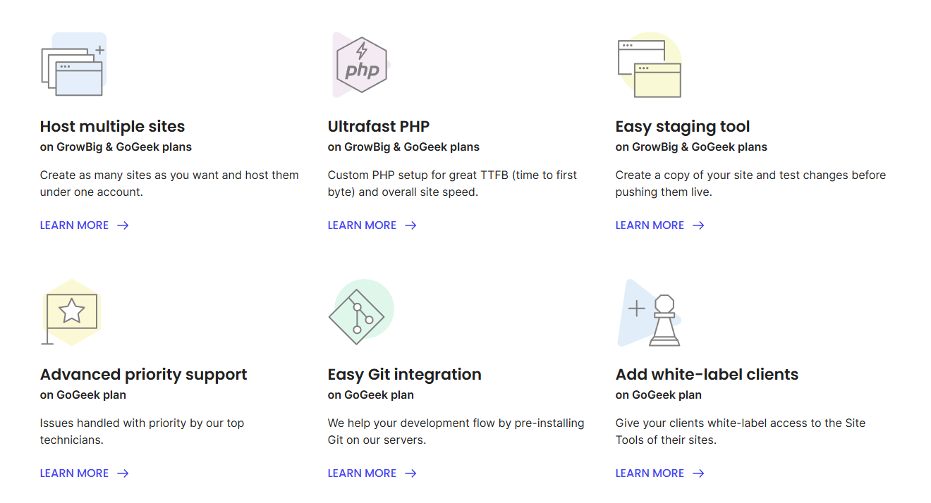 Small business owners, e-commerce site owners, and personal bloggers will find that SiteGround offers plenty for their website hosting needs, even in the entry-level plan. My StartUp shared WordPress plan included unmetered traffic, unlimited email accounts, and unlimited databases.
